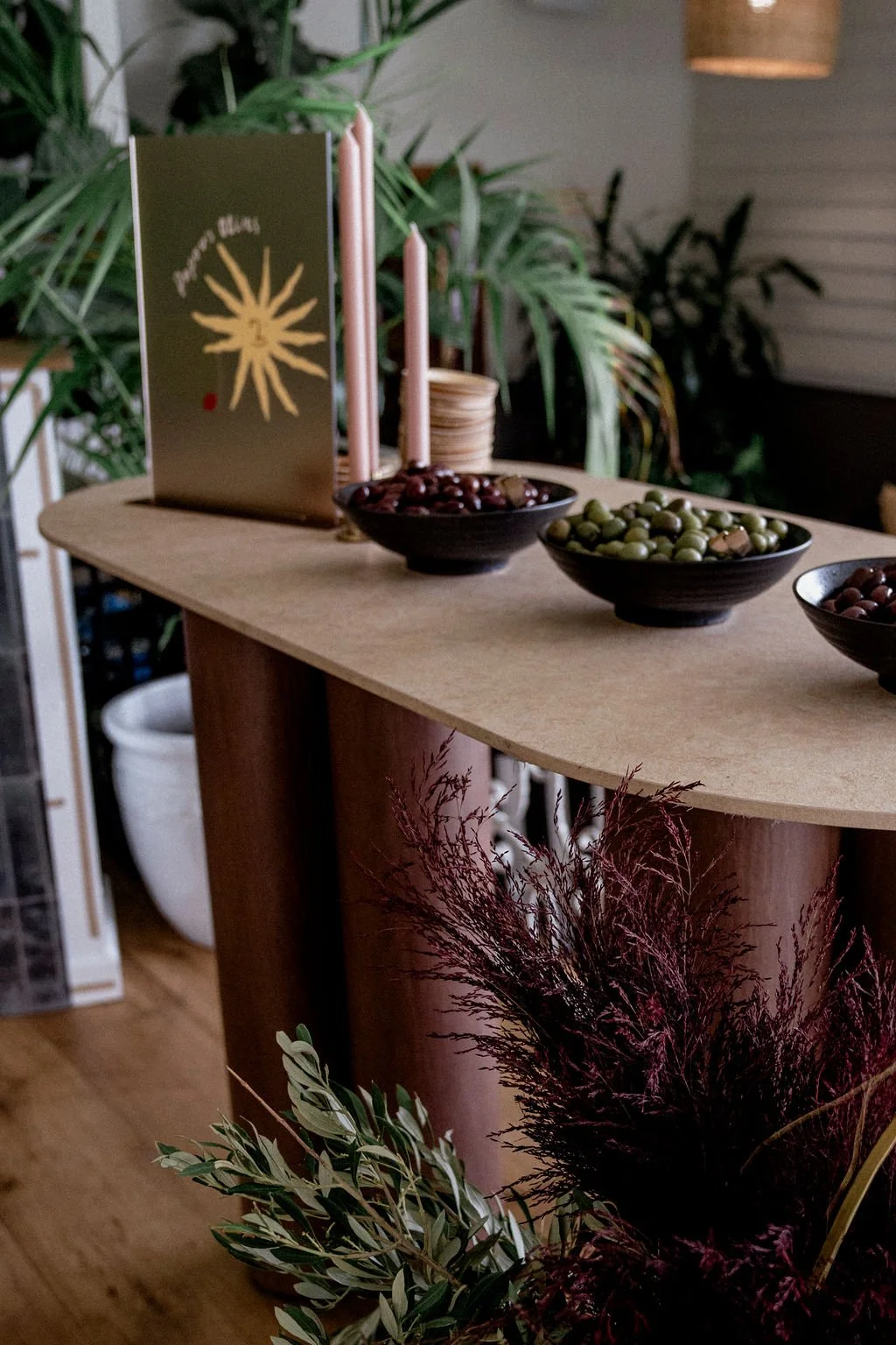 Our designs at Philoxi Styling always draw inspiration from a muse, and for Lucius’ christening, Martha was the clear choice. During our discussions on the theme and colour scheme, we focused on incorporating earthy and warm tones to create a modern bohemian vibe. But the anchor of the design? Martha’s hooded bordeaux dress by Saint Laurent. Need we say more?
